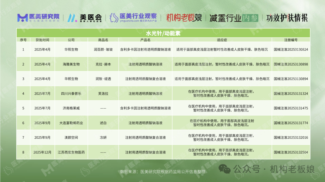 进入2026年不足两周的时间,已有爱美客A型肉毒、奇璞生物胶原蛋白植入剂、以及希睿达、协合医疗两款“水光针”获准上市,而这不过是2025年“常态”的缩影。